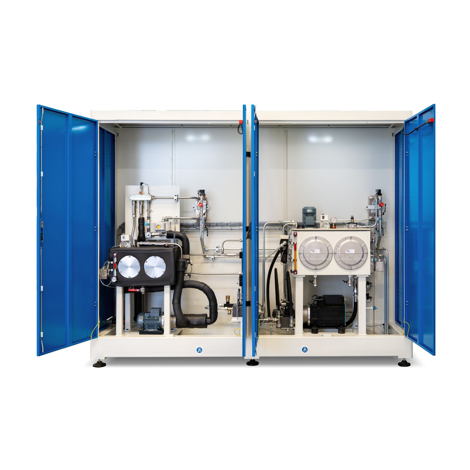 Il banco prova BCI50FLEXES/W esegue prove a impulsi e prove di scoppio su componenti oleodinamici, quali tubi flessibili oleodinamici e tubi industriali, in accordo alle norme ISO 6803, ISO 6802, ISO 8032, ISO 1402, EN 16643.